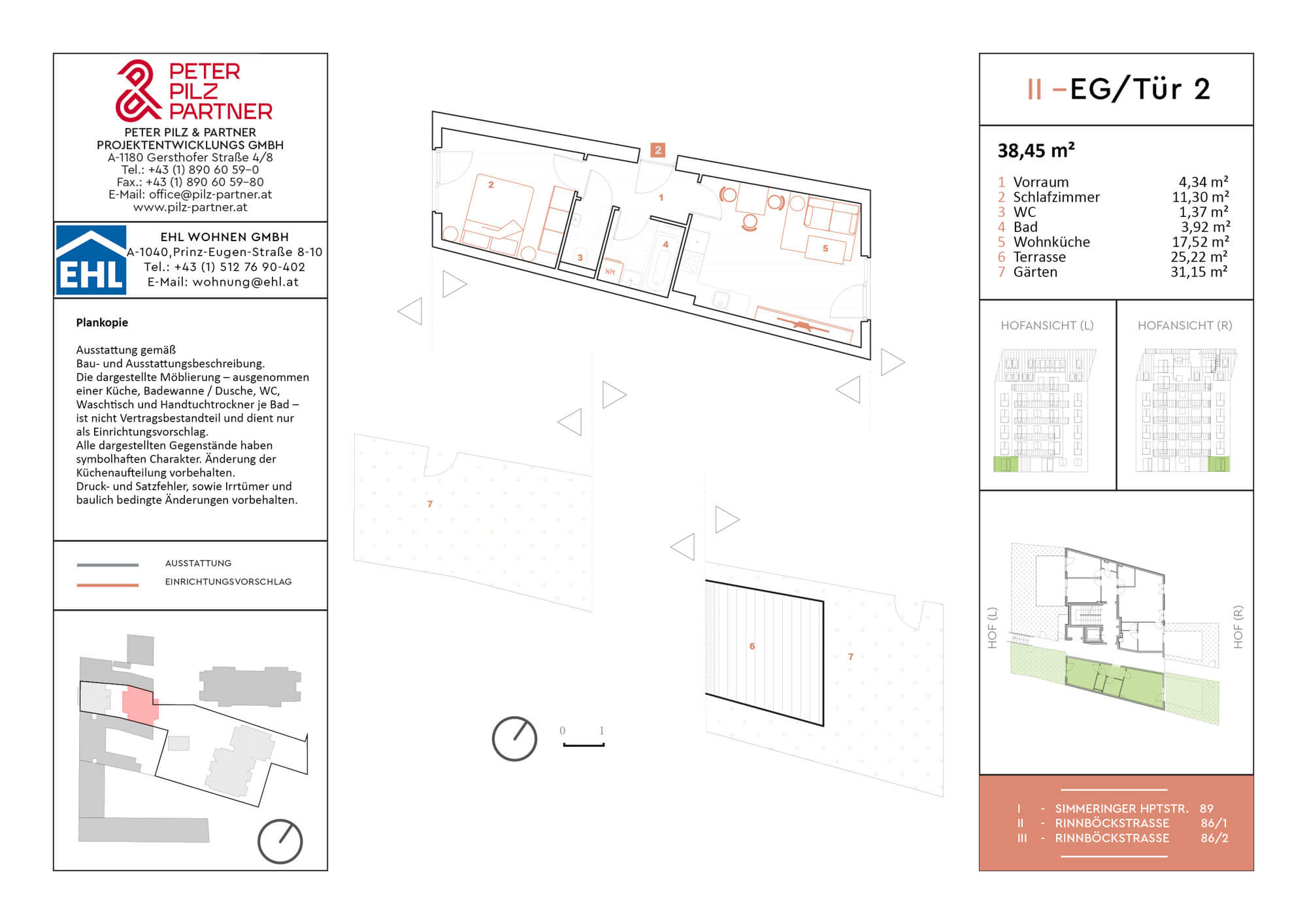 The residential building is divided into three blocks and connected by an inner courtyard. The residential project is accessible from both Simmeringer Hauptstraße 89 and Rinnböckstraße 86. All apartments have a functional floor plan and have an outdoor area. A modern fitted kitchen including all major appliances is installed in each apartment. The residential building is connected to district heating. Underfloor heating is installed in the units. The building's own underground parking garage is located beneath the residential building. A cellar compartment can be rented separately (subject to availability). There are also bicycle and baby carriage storage rooms.