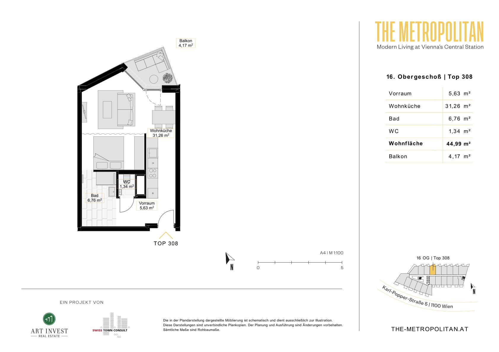Willkommen im "The Metropolitan", deinem neuen urbanen Rückzugsort im Herzen der Stadt! Dieses hochmoderne Wohnhaus, setzt neue Maßstäbe in puncto Design, Komfort und Nachhaltigkeit. Mit 370 Wohneinheiten, gemeinsamer Dachterrasse mit fabelhaftem Panoramablick, modernem Fitnessbereich, einer Coworking-Lounge und vielem mehr bietet The Metropolitan eine unvergleichbare Wohnqualität für anspruchsvolle Stadtbewohner*innen ohne dabei Wünsche offen zu lassen. Highlights: - Panorama-Dachterrasse in der 19. Etage mit atemberaubendem Ausblick über die Skyline Wiens - Großzügiger Fitnessbereich mit neuen Technogymgeräten und direktem Ausgang auf die angrenzende Spiel- und Sportterrasse im 1. OG - Stylische Coworking-Lounge im 2. OG für Homeoffice, Meetings oder deine kreativen Projekte - 378 Indoor- & Outdoor-Fahrradabstellräume inklusive Toolbox - 110 Inhouse-Tiefgaragenstellplätze sowie Einlagerungsräume im UG hinzumietbar - Klima:aktiv Zertifizierung „Silber“ für Nachhaltigkeit - Modernes Eingangsfoyer inklusive praktischen Paketboxsystemen
