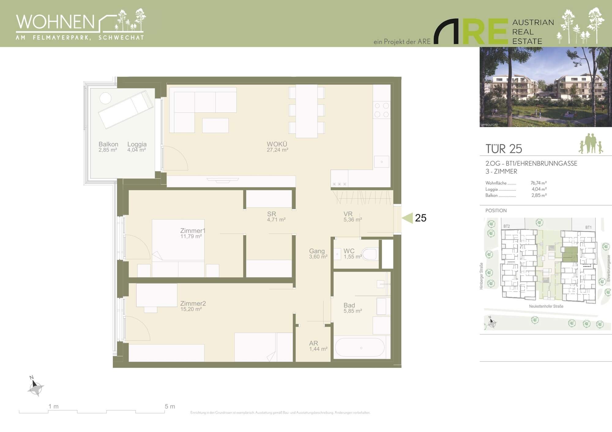 Felmayerpark: Grün, heimisch und preiswert – nur einen Katzensprung von Wien entfernt! 80 Wohnungen, 100% Spaß, ein Katzensprung von Wien entfernt – bezahlbares Wohnen im erstklassigen Neubau. Entdecke eine exklusive Wohnanlage, aufgeteilt in zwei moderne Stiegen: eine zur Ehrenbrunngasse 40, die andere zur Himberger Straße 21. Verbindend ist ein ruhiger Innenhof, der nicht nur Entspannung bietet, sondern auch einen einzigartigen Blick auf den Fehlmayerpark. Vielfältige Wohnungssgrößen (40-117 m2) garantieren für jeden Bedarf die passende Lösung. Highlights: - Direkte Nachbarschaft zum idyllischen Felmayergarten - Nahe der Wiener Stadtgrenze gelegen - 80 Mietwohnungen in zwei ansprechend gestalteten Gebäuden - Kinderspielplatz und Fahrradabstellplätze für familienfreundliches Wohnen - Jede Wohneinheit verfügt über private Freiflächen - 123 Stellplätze in der Tiefgarage - Nachhaltige Bauweise mit extensiver Dachbegrünung